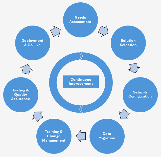 Our commitment extends beyond initial implementation. We help you establish mechanisms for gathering user feedback, monitoring system performance, and evaluating key metrics, driving continuous improvement through regular upgrades, enhancements, and proactive maintenance. This ensures your ECM solution evolves alongside your business and technological advancements.
